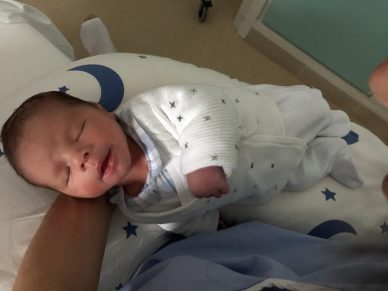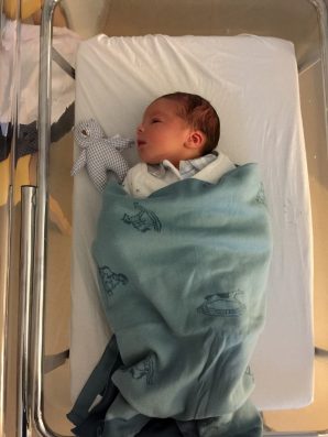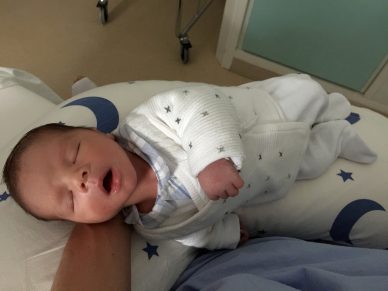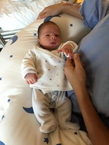 J’ouvre encore très peu les yeux, et on dit que je ressemble à mon grand frère Nathan avec des cheveux foncés.