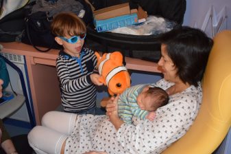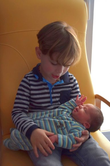 Il a couru vers nous et est monté sur le lit, il m’a tout de suite fait des bisous, m’a pris dans ses bras et m’a fait plein de calins… Je crois qu’on s’aime déjà très fort !