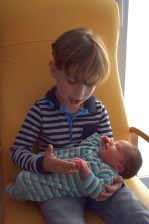 A la fin, mon grand frère Nathan s’amusait à me poser son doudou sur la tête et ça le rendait fou de joie ! Je crois que je n’ai pas fini d’en baver !!! 😀