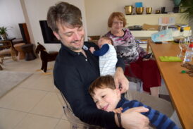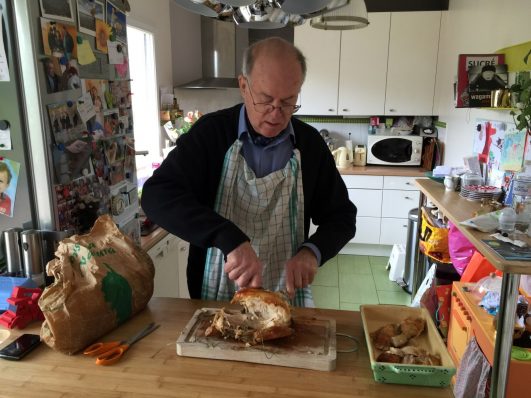 Alors, ce midi, Papiji a eu l’honneur de couper le poulet pour son anniversaire ! Et il s’en est très bien sorti ! C’était très bon !